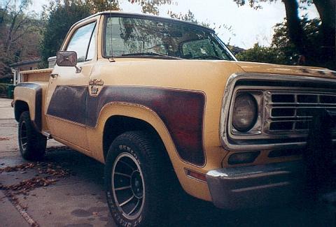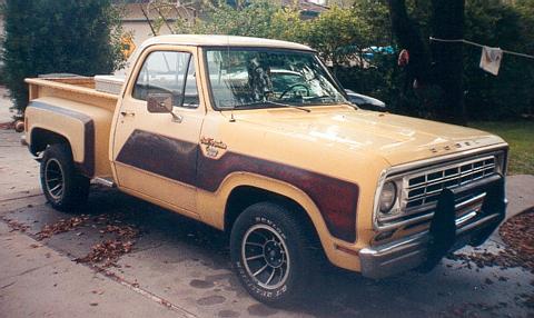 James' dad was the original owner of this 1976 D100 Custom Californian. He bought it new in 1977 from a local dodge dealer. It has a heavy duty half ton package that makes it a 3/4 ton. Currently it has a 318 with a 2BBL carb and long tube Hedman headers that run into dual glasspack exhaust. The 727 trans was recently rebuilt and is the original unit. He has been driving it since high school and is still using it to commute to college. The truck has almost 200,000 miles on it. James would like to get a bigger engine with fuel injection and an overdrive transmission...but right now...he is working on his 55 Bel Air. Please email James at