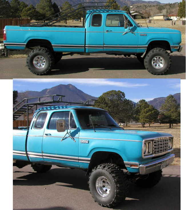 Michael's 1978 Power Wagon is a 440/727. The drive train is stock with a 3.91 Dana 44 front differential and a 3.91 Chrysler 9.25 rear differential. If you saw the stock picture before he lifted it 8" it was "Grandpa's 5th wheel tower". This is evident by the holes in the bed and the holes in the frame from the airbags. The interior is worn in such a manner that it appeared most of the time there was only a driver...never any passengers. Everything looks good except the drivers seat. Michael originally bought this truck on a whim in Denver because he had this exact truck when he was in high school. While all of his friends kept their trucks (all 73-87 Dodge trucks) he got rid of his and bought a Dakota. He has regretted it every day since he sold it. Now that he has one back he plans on restoring it with almost all the factory options that were available. Some time soon he wants to create a web site with detailed pictures and instructions for adding almost any factory option correctly to this era truck. When he does, we will post the web address here for you. If you would like to contact Michael please email him at: