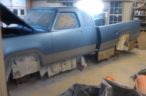 UPDATE (December 2011): John is hoping to have his truck out of the garage by the end of the year. The clear coat he just put on it came out rough, so he has lots of sanding to do.
