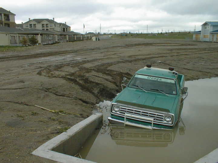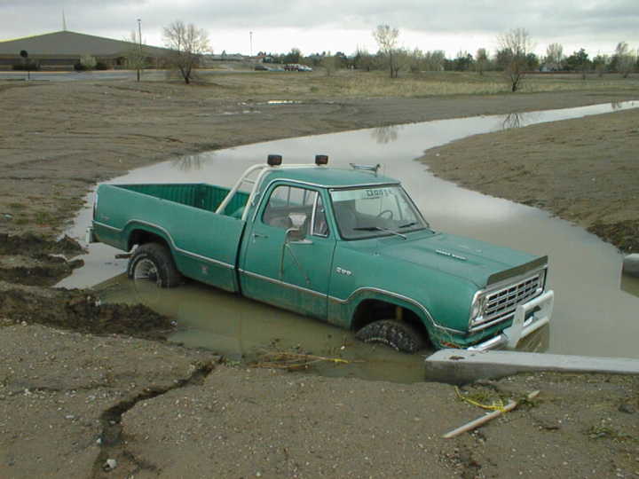 Joshua had a little accident with the mud this spring! He slid sideways down the muck-hill into the run-off ditch. He says he probably could have gotten out, except for the fact that the front tires were almost bald and he had no room to get any momentum.
