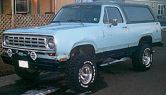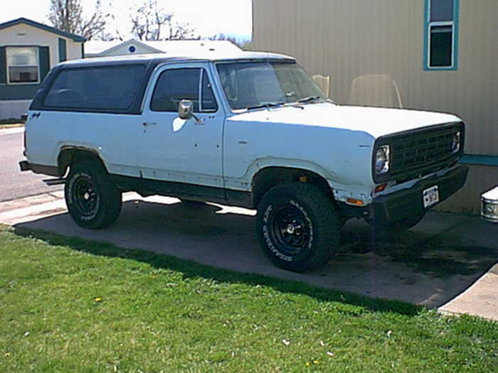 Brian's 81 Power Ram 250 Club Cab rebuilt 360/4 speed 32x11.5 tires. When he bought this truck he kept wondering why for a 3/4 ton it had 5 lug wheels on it. He found out later that the axles were swapped out and put on to a 79 Ramcharger. He figures that's why he got it so cheap ($850). He is trying to turn this one into an off-road truck.