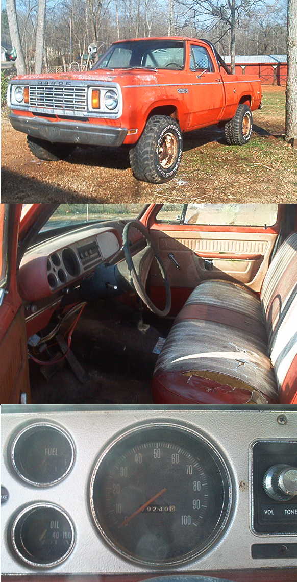 Tim's 78 Power Wagon has a 440 in it and is actually in better shape then the first one he purchased. He had looked at it about 7 years ago when it was sitting in a field where it had stopped running and the owner just left it. It hasn't been tagged for the highway since 1984. It was being used on a farm until it broke down over 10 years ago. A few months ago the farm was sold to a developer and the truck had to be moved. A friend of Tim's purchased it for $250 and got it running. The gas tank had a hole in it and the lines had rusted shut. The truck was going to take more time and $ than Tim's friend wanted to invest, so he sold it to Tim for what he paid for it...$250. Nice deal! It has 81K original miles on it. Thanks for saving the Power Wagons, Tim!