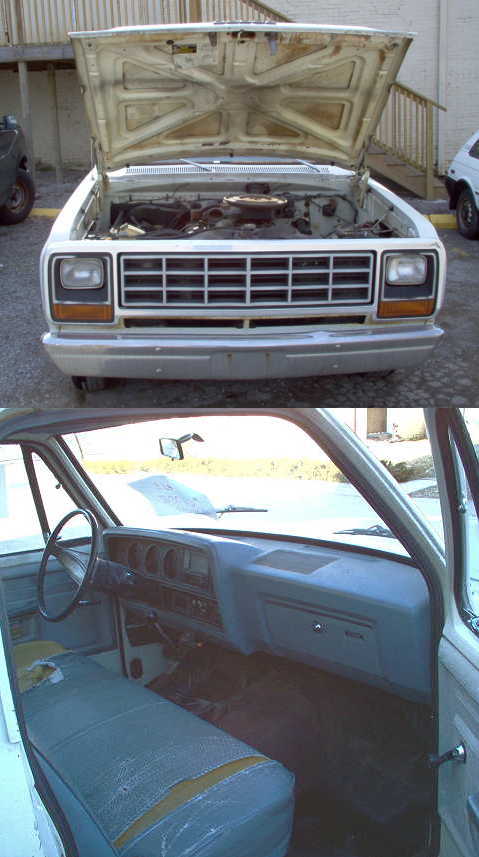 Johns '82 Dodge Ram 1/2 ton has the original 225 slant 6 complete with a 4 speed transmission. The truck has no rust and is all original. John purchased it for $600 and plans on restoring it. John plans on installing a 4BBL hyper pack manifold, having the head milled, adding a 450 CFM Holly carb, rebuilding the tranny with a shift kit, installing a cat back exhaust and having the interior redone. He also plans to repaint it in it's original color of Pearl White. John promises to update us on his progress. If you have any words of encouragement, suggestions or advice please contact John at: turnerjc03@yahoo.com