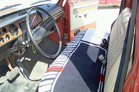 Other than a tear in the drivers side of the bench seat (covered with an old blanket he used to use on his 1967 Dodge Polara 2 Door Hardtop w/ a 383/A727 Automatic) the interior has virtually no damages to speak of anywhere. The pedals have very minimal wear, the steering wheel has none, and the dash and trim have no blemishes either!.