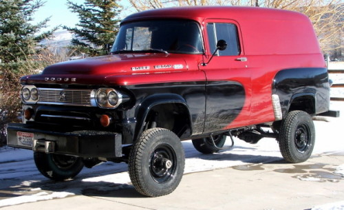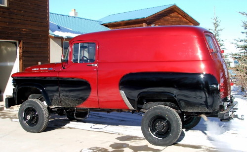 History: I had a 1962 Dodge Town Wagon in college, in which I actually lived one semester! After graduation in 1979, I loaded all my worldly possessions into the back of my '62, and for the next three months my dog and I lived out of it while looking for a home and work in the mountains. I wandered into Jackson Hole that summer, and never left. I know live 25 miles west of Jackson in Teton Valley, Idaho. Unfortunately, we have real winter here, and my '62 Dodge was a one-wheel drive (sometimes!), lacking even a limited slip differential on the rear. Needless to say, it was not a truck meant for Jackson Hole, and I had to sell it. Still, I never really got it out of my system, so 25+ years later I've finally replaced it. This time it's a '62 Dodge Town Panel with 4WD.