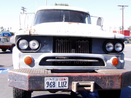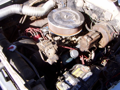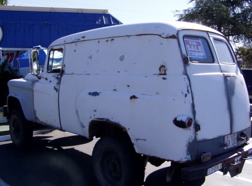 I found the truck on the Web; it was living in UT and on its last legs. It had started its life as a right-hand drive, 2WD postal truck. A previous owner had converted it to left hand drive. Larry Burns, the guy I bought it from, had converted it to 4WD using (I think!) the Dana 60 and NP205 (or 203?) from a +/- '78 Dodge Power Wagon. He didn't want constant 4WD, so he put another Dana 60 on the front to have spin-in hubs. I'm not sure if it was Larry or a previous owner, but someone put a Dodge 383cid from a '68 Charger under the hood, including its power steering, and installed a TF727 automatic from something.