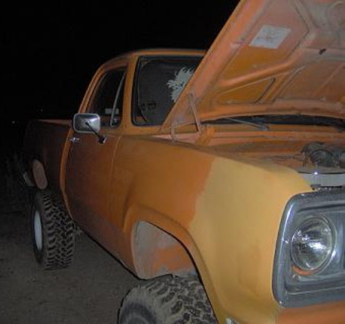 Larry's 1978 Power Wagon has a 318 with a 650 Edelbrock carb under the hood, and sits on 33's. He plans to give it a 427 Hemi, new paint and new wheels.