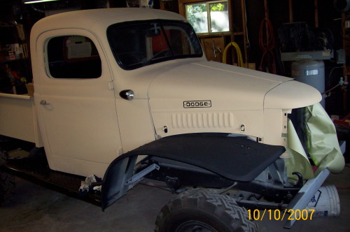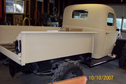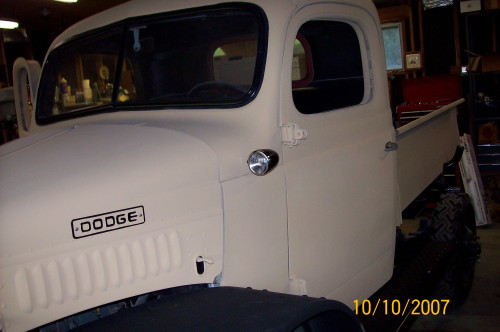 Doug Hertel has this 1941 1/2 ton WC Dodge on the way to him from Maryland. Doug lives in Ohio. This 1941 truck has been sandblasted and epoxy primered. Doug is going to do the painting himself. Doug used to paint, letter and pinstripe racecars, hotrods and even did all the custom painting for the local Hell's Angels.