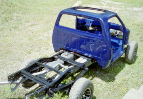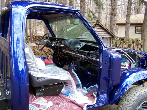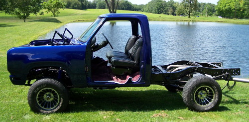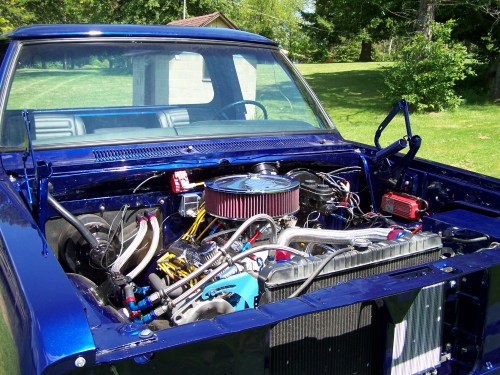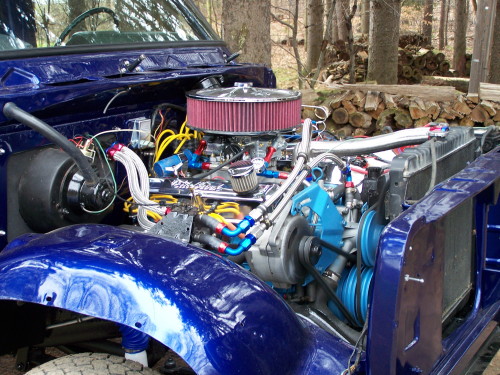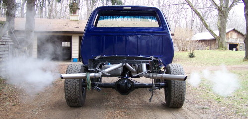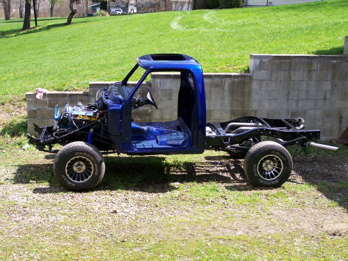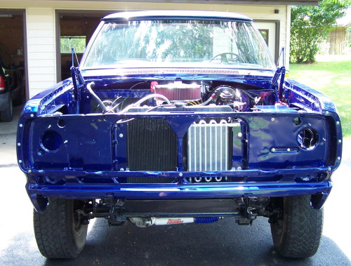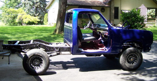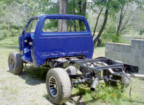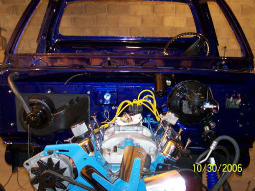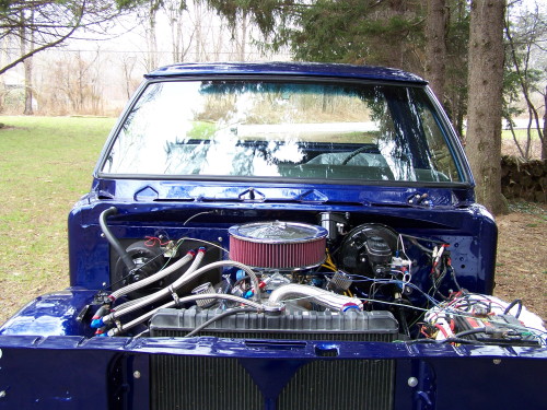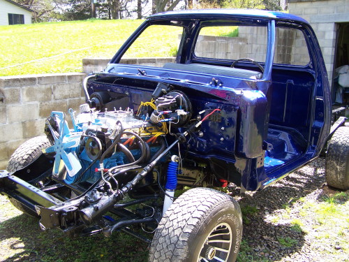 2008 Update: Nathans's truck is now running. He has the MSD ignition hot wired at the moment so it can move under its own power. He hopes to get the outer fenders and hood on shortly. The new windshiled is also installed.
