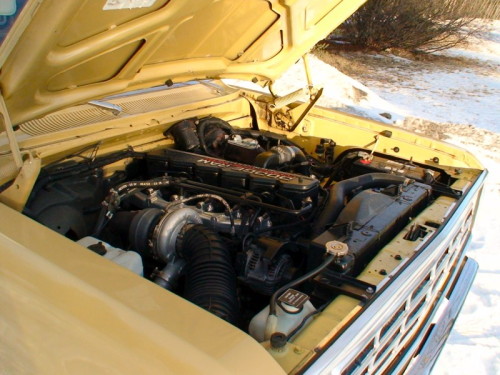 Reg used a turbo from a 1996 12 valve with a 12cm housing and a waste gate set to 24 psi, he used a BD turbo mount exhaust brake and it all fit and cleared under the hood just A-ok. Reg's truck with the stock pump spools up way faster and makes 20 psi of boost on long heavy pulls. He also has a nice 13 to 15 PSI in lower gears off the line pulling. The turbo works fantastic, with the 16cm housing on the 1993 style turbo. He has to get the right hill to get a good 16 psi boost.