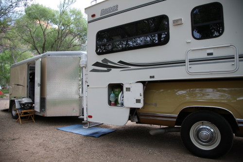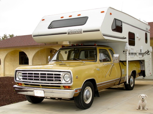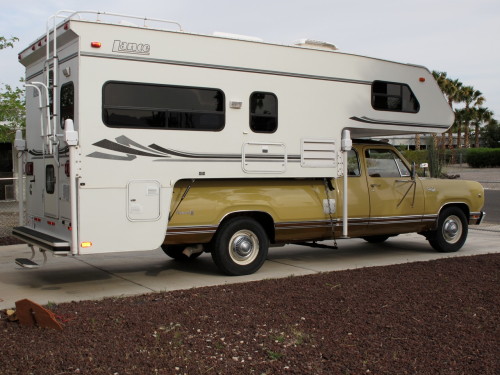 UPDATE Oct 2010: Reg sent us some new pictures. He now has a 47RH transmission in his 1975 with a Jake brake and other upgrades. He also added a new to them 2004 12 foot Lance camper, after an Arizona tree took out his old camper.