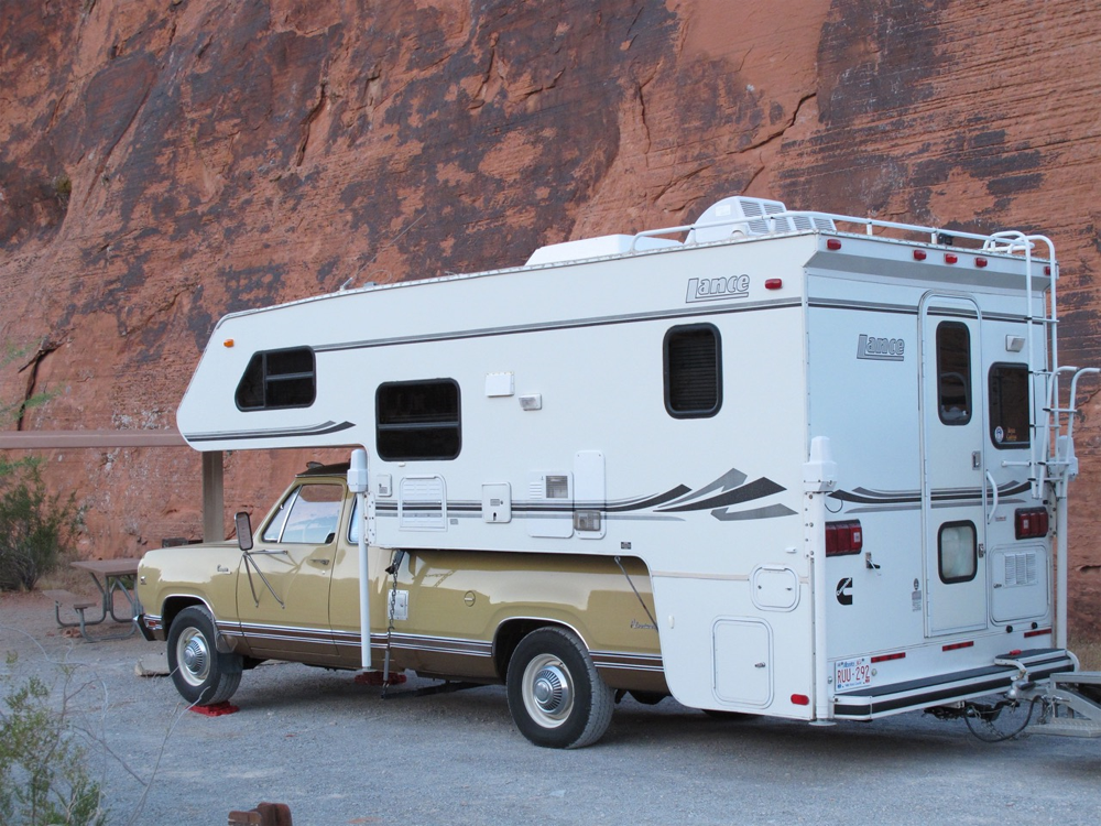 Now its 11 years later, and the truck is about to roll over the 100,000 mile mark without any work to the front end or suspension , only tires and normal service has been necessary. We have traveled all over the mid west USA and Canada in this truck, starting out with the old 1975 wood camper that came with the truck, see pic's at link. In 2010, while camped in LA during a big storm, a big tree came down on the 75 camper, writing it off, but not touching the truck. We purchased a 2005 12 foot Lance camper for replacement.