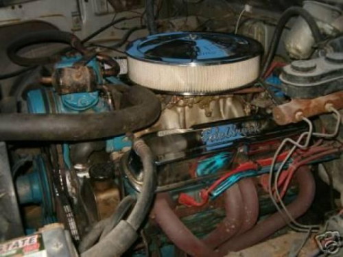 The 360 engine has been rebuilt and bored out .030" and a comp cam has been installed. A new Performer intake with a Holley 4BLL has also been added.