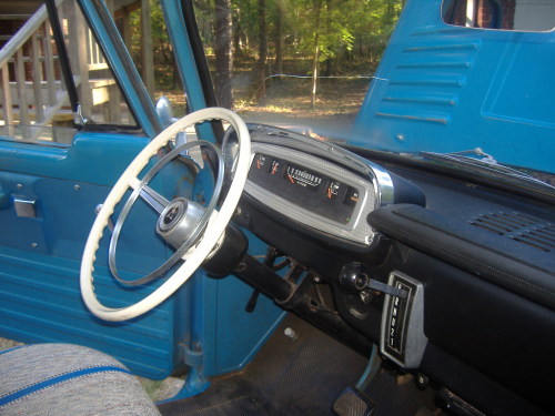 Marty's Grandfather bought this 1968 D100 Custom brand new in 1968 and she has been in the family ever since. The truck is completely original all the way to the spare tire under the bed -- an old Goodyear Power Cushion that has never seen the pavement. She also is complete with the owner's manual and warranty credit card in a clear plastic cover. Marty's truck has only 61,000 original miles on the odometer.