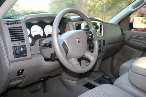 Swift Dodge Sacramento. Our truck is Patriot Blue with premium cloth seats, 48RE automatic transmission, anti-spin rear differential, rear power sliding window, fold away power trailer tow mirrors and power adjustable pedals. I inspected the truck before taking delivery with the help of the "New Dodge Ram Inspection Checklist" available at