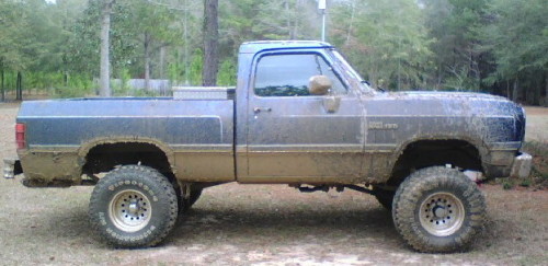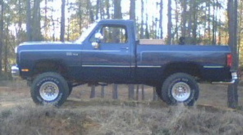 Brian's Dad gave him his first truck when he turned 16. It is a 1991 Power Ram 150 with a 318. All of his buddies call it, "The Big Blue Billy Goat".