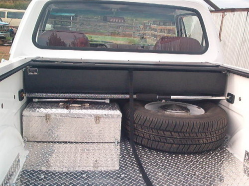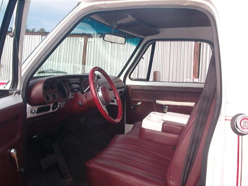 The two biggest visual changes were the color change from Sable Brown Metallic (the Arizona sun can really heat up the interior of a dark colored truck) and an aftermarket seat. NOS parts were used wherever possible and original and quality used parts were used to complete the truck. Factory AC, cruise control, tuff wheel, factory tach and volt/vacuum gauges, aux gas tank, aluminum diamond plate bed floor were some of the other changes. As no True Spirit Stripe kits are currently available lots of pictures and rubbing of the original decals were made and a local graphics shop reproduced and applied the stripes.