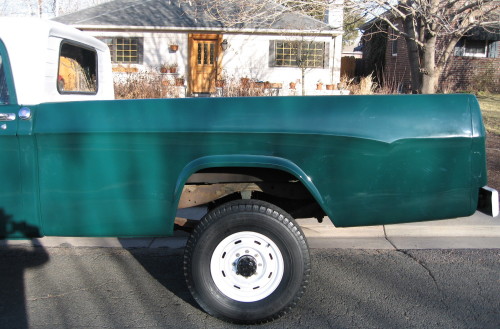I also put in a new cab mount bushing on the passenger side and new bolts through on each side. The truck body is rust free and 99.8% metal. The only body filler that was used was on a small area the size of a golf ball just in front of the passenger door on the very bottom.
