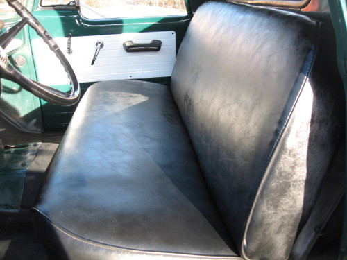 This truck has always been garaged since it was new and is still currently being kept in my garage. After having the truck repainted I sealed the floors and all the wheel wells with a black rust proof spray liner. The inside of the bed was also done with a roll on liner after it was painted. It looks very nice. I also purchased door hinge pins from Vintage Power Wagons and had the hinges re-drilled and re-pinned and aligned on both sides so that they close smoothly. I put a new star wheel in the driver door because the old one was worn. The passenger door was pretty much unused and in great shape.