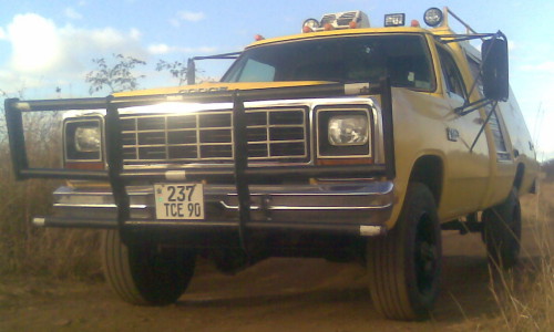 Occasionally Anith drives his Dodge truck to the African bush and camps out. He is in the process of converting his truck to a motor home with basic facilities. It runs on 10R 17.5 tires with a diameter of 33 inches. To-date the truck has run 32,200 miles.