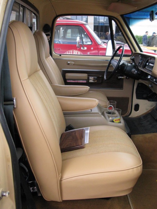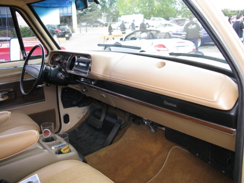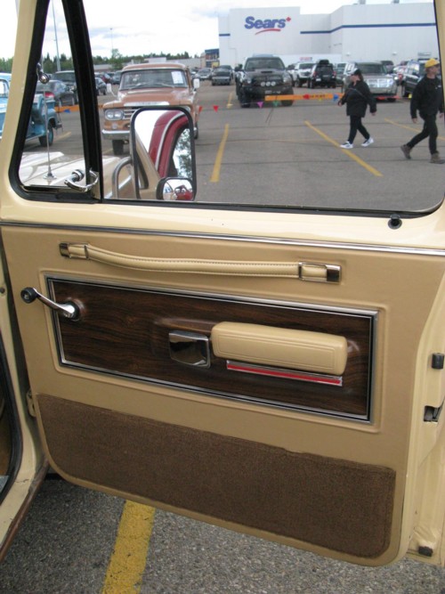 Brad purchased this ‘79 four years ago as a true survivor (from the original owner) with minimal cosmetic work required. Other than replacing the damaged passenger door, this ‘79 sports all of it’s original body panels. After a fresh coat of paint and proper trim design, this ‘79 has hit the road for many Show and Shines. This Adventurer has a 360, T/Q 4BBL, A727 transmission, 9 1/4 rear end with a 3.91:1 ratio, factory cruise and a Canadian only factory option, the Dodge “Kary Cap Deluxe” canopy. He had the Kary Cap removed to be colour matched with the truck and then decaled with the “Ram Tough” moniker. Brad had a local graphics design shop create the “Dodge Trucks are Ram Tough” theme design for the canopy back window. The scene of the 2 rams smashing their heads together catches the Ram Tough reputation and advertising theme of the day. While the canopy was off the truck, he had the interior of the box fabricated with a colour coded box liner.