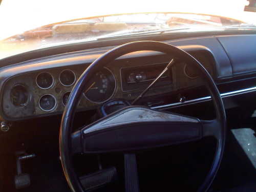 Piper got the dash back in order and the lights all working properly. He tagged it and started driving it to work and to the dump. When a truck came into the salvage yard with a fresh 727 in it, he grabbed the transmission, steering column, pedal assy, brackets, linkage, harness, driveshaft and crossmember. Originally, it was a slant 6 3 speed on the column. Piper changed it to an automatic. He then added the vacuum booster to give it power brakes. The rear differential was on it's last legs so that got changed too. He also changed the intake gasket and rebuilt the BBD carburator. It ran good and stayed the same way for quite some years until he moved back to Ohio.