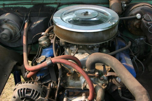 The 74 Club Cab has a brand new 360 motor, new transmission, and many other new parts, plus he just painted it Forest Service Green. According to Herb, it has been a real "work horse" around the farm.
