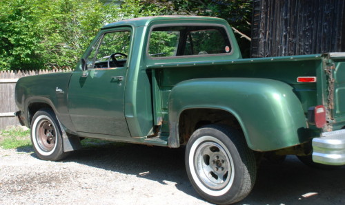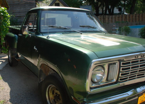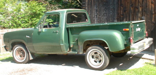 The Dodge is a 1978 Custom 100 stepside, slant 6, manual 4 speed. The truck was purchased in 1986 when Derik was 16 from its orignal owner. Derik has owned it for 24 years. It was the first vehicle he bought. The mileage on the truck at the time he purchased it was 59,526 and now it is 89,492. The truck has been off the road for a total of five years. Now Derik is looking into restoring this 32 year old Dodge.