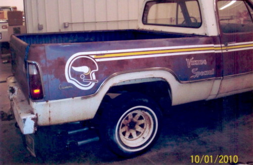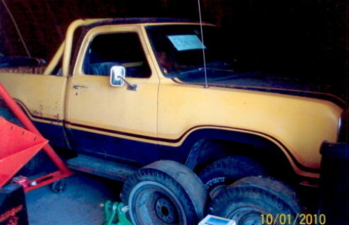 1971 Mercury Cyclone with 77K Miles, 1977 Macho with original paint except rollbar, 440 original, 59K Miles, 1978 Lil Red Express with 51K Miles, all original, and 1982 Power Wagon Ram 360, automatic with a short box