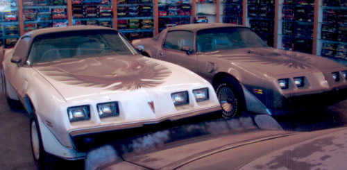 1980 Trans Am (white) Indy Pace Car, 301 Turbo and 53K miles. 1979 Tenth Anniversary (silver) Trans Am, 400 V8, 4 speed with 850 miles.