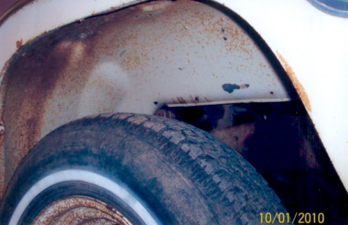 White wheel wells with plum showing under chipped off spot