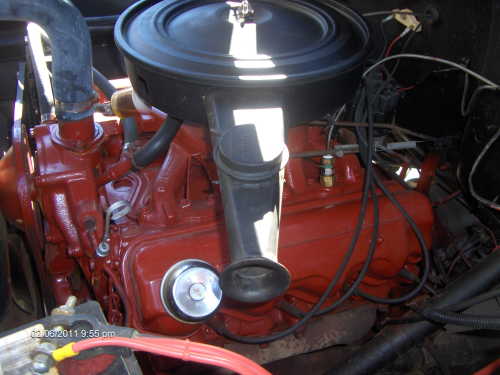 It has a 1956 Dodge Coronet Custom Royal 315 Polyhead engine with a Loadflight Push Button transmission. The engine was rebuilt around 1968 by Performance Engines in Fairfield, CA. The truck has been from coast to coast pulling a 19 foot Aristocraft inboard boat. It became the tow vehicle for the old Merc back in 1989.