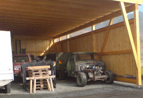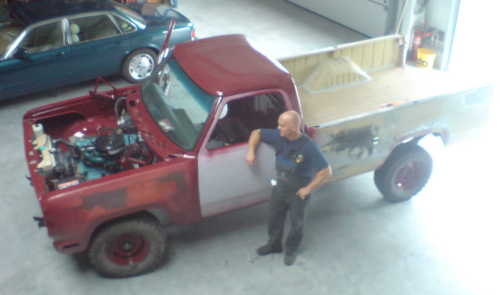 They had decided to keep the 225 slant 6 for ecological and fuel economy reasons, but after they drove the truck back from their (German) Mopar Nationals, they noticed the "lousy" power and lots of play in the steering (which they had just paid someone to overhaul). Markus said to Mario, "We will convert it to a V-8 with power steering".
