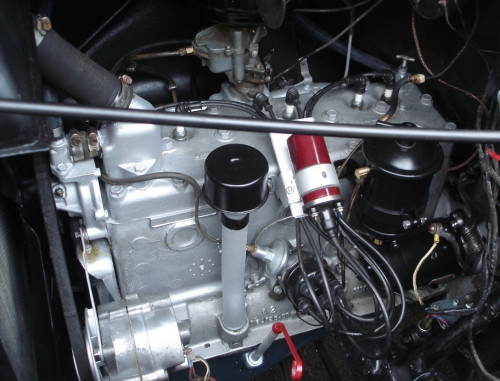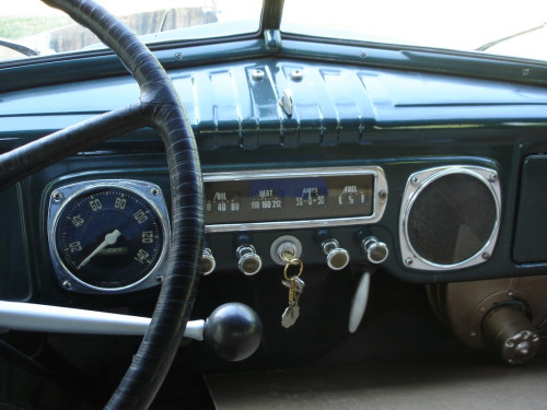 The engine has been checked, tuned and it works great with good compression and oil pressure when hot. It doesn’t overheat. The carb has been rebuilt, and all the engine wiring was redone. The interior had a good bench seat, already restored. He rebuilt the four gauges and replaced the speedometer, which was missing. Thierry found a speedometer on ebay in Israel. It was a miracle to get one in KM/H, which was what he needs for driving in France.