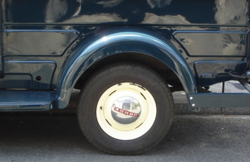 Thierry has done a complete restoration on his 1950 B2B Dodge truck. The frame was cleaned and protected with “Rustol”, which is a special anti-rust coating. It has new paint, new glass (only the rear central glass is still missing). All the rubbers and weatherstrips are new.