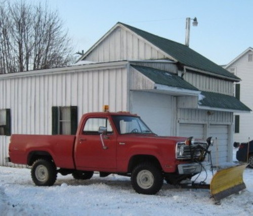 It has the original factory Meyer snow plow on it. David only uses the truck in the winter to plow snow and keeps it garaged for the other 9 months. The truck lacks power steering so it tends to drive like a truck, but it gets the job done.