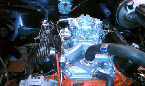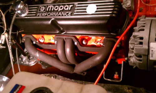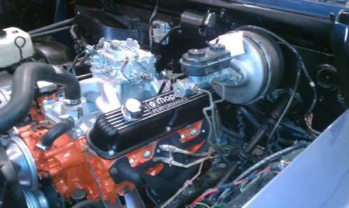 UPDATE August 2012: Trevor painted the motor, and painted rumblebee style stripes on it. He added Cragar S/S wheels(60's on the front and 50's on back), and a chrome side pipe exhaust system. He also added a steel crank, mild cam, forged pistons, air gap intake manifold, shorty headers, and an old school Carter AFB. To get rid of excess wires for a cleaner look he pulled the wiring and installed wiring from a 1985 D100, got rid of the egr valve, air pump and catalytic concerter. Updated pics are below: