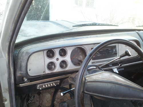 Destin had the original seats reupholstered, but doesn't want to put them in until he gets his truck painted and the interior restored. He plans on wiring in roll bar lights and a clock. It didn't come with a clock but he likes the looks of it. When Destin paints the truck, he plans to use the original paint colors and decals. He is also going to put on a new tail gate.
