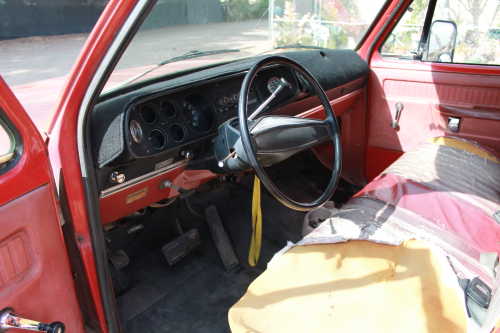 The truck has 292,149 miles on it. The 727 transmission has been rebuilt and the 4.10 gear was changed to 3.54 to make it a little more freeway friendly. It won't break any land speed records, but it gets great mileage (18-20 mpg hwy). Rod's son drives it almost every day to work. They are going to get the seat redone and have it painted soon! It has the factory air cleaner. They are in process of putting a NP445 4-speed in the truck as soon as they gather up all the parts. The vin # has the H in the engine code.