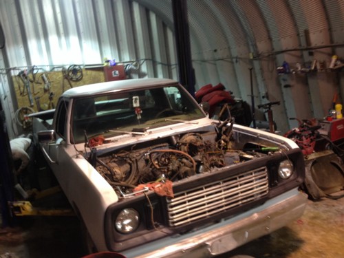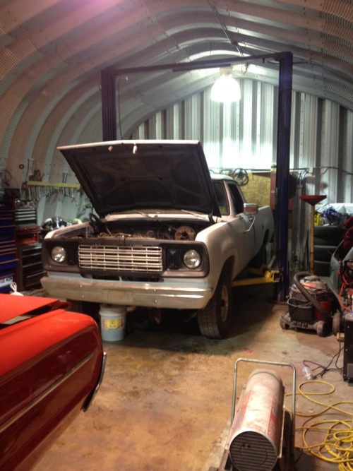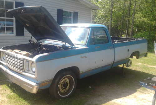 Joshua is working on a 1978 Dodge Adventurer 150 with a factory 2 barrel 318 5.2L engine. The odometer currently reads 160,000, but the odometer has been rolled over. It has had an engine replacement, then later down the line, the engine was rebuilt before Joshua got it. The previous owners kept great records, which were in the glove box when he got the truck. She looks rough now, but Joshua has great plans for her. Please keep checking back for updates.