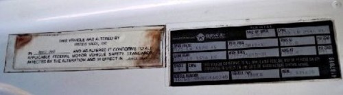 The sticker is on the door post. This is the only year that had a carb. They are very expensive to replace.