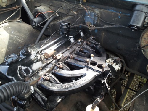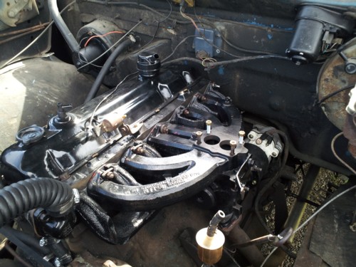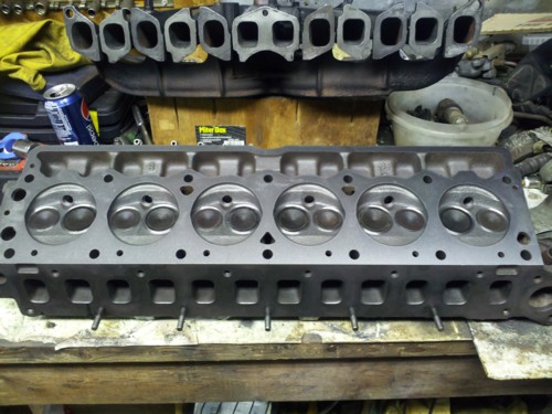 Ol Blue is back on the road after some top end work. Corey just had the super six head worked over to include valve guides, valve seals, comp cams hi - energy pushrods, and . 020" mill to bring the compression up slightly. All the ports on the head and both intake and exhaust manifolds have been match-cut to the new Victor Reinz gaskets. He installed Denso Iridium spark plugs, ac delco plug wires, and a Pertronix flamethrower II ignition coil to get the spark where it needs to be. The old Dodge is better than ever. Below are a couple of before and after pics of the head. Next step: interior. He's in the market for a set of buckets, if anyone knows where he could get some please email him. Corey wants a 'buddy' seat like in the Lil Red Express pickups.