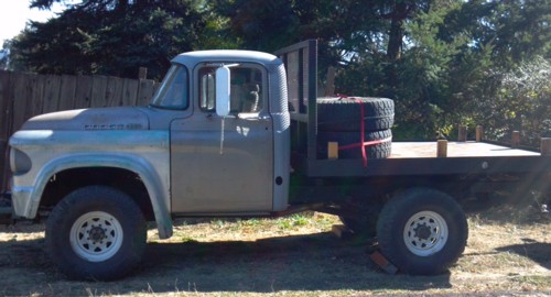 Gonzzo's 1960 truck started out as a D100. The cab was placed on a 1964 Power Wagon chassis and running gear. It has a 383 under the hood. It has a Braden PTO winch that works, as well as all the running gear, and transfer case, hubs etc. It is nearly complete and will be getting some paint fairly soon. Gonzzo uses it at his art gallery with his 1970 Dodge 300 flatbed. They transport and display metal sculptures with the trucks. Gonzzo's 1960 D100 is currently under construction. He will send more pictures after the truck is painted.