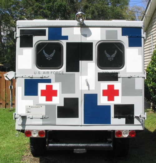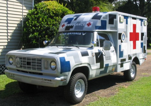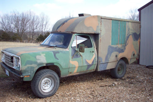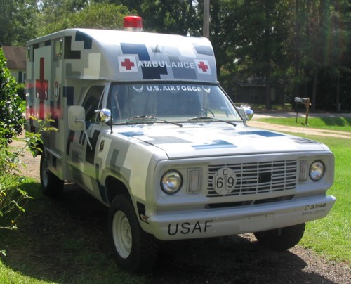 Butch purchased the ambulance from a fellow who sold it on eBay. It was issued to the Army Medical Corps in 1977 straight from the factory in Ohio. They used the ambulance until 1990 when it was surplused. It was then purchased by a volunteer fire dept for brush fires somewhere in the midwest. They used it for several years, and then sold it to the person Butch bought it from. It was in very rough shape when he got it. He worked on it for over a year getting it back in shape. It now has a rebuilt engine, new carburator, new tires, new door & window rubber. Butch converted it to a dual battery system. It also has a ten watt solor panel mounted on the roof to keep the batteries fully charged. Butch is converting the back into a mini-camper this spring. The ambulance has a fully functional siren and red light on it. Butch added outside flood lights all the way around it for night time use.