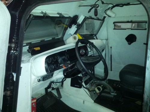 This is a 1979 Cadillac-Gage Peace Keeper Armored Vehicle. It began it's life in the USAF as a security police vehicle. It had an M-60 machine gun mounted on the roof back in its active duty days. After it was retired, it joined the Atlanta Police Force and provided security for the 1996 Olympics. After the Olympics, it left the Atlanta police force and joined Georgia Tech. We are not sure what it was used for at Georgia Tech, but eventually it ended up sitting unused for many years. About a year ago, the Sandy Springs Police Department obtained the Peace Keeper and started getting it ready to return to service. Phil was hired to do some mechanical repairs and redo the entire electrical system. It’s been modified so many times with different accessories the wiring has been hacked to pieces. The vehicle was built on either a Dodge D200 or W200 4x4 chassis with a 318 cid engine and automatic transmission. The suspension was modified to 1 1/4 ton instead of ¾ ton. The data plate says the vehicle weighs 10,000 lbs with a shipping weight of over 8,000 pounds. The extreme weight makes it hard to get going and even harder to stop. It is an interesting project Phil has enjoyed working on. He will send more pics as the work progresses.