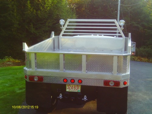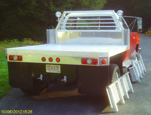 The bed was scratch-built locally to Tony's specs, and fresh diamondplate replaced all of the old diamondplate on the front end and behind the cab. The steps were added at this time. The bed is a flatbed with removable sides and back with a rugby lift.