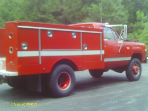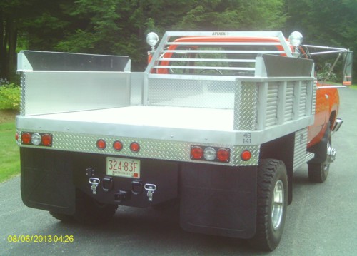 Tony bought his truck in May 2011, from a New Jersey fire department auction, as it was finally being taken out of service. It had 18,000 miles on the odometer. Tony scrapped the bed, painted the frame, put in a floor mat, reupholstered the seat, installed new brakes, new seals, shocks, muffler, repaired the winch, universal joints, wheel bearings, cleaned everything possible and removed a ton of old wiring from throughout the vehicle. The engine is still strong but he did replace the valve seals, rebuilt the carb, gave it a tune up, new hoses, belts etc. As a tribute to its heritage, Tony has incorporated some of the old fire truck equipment on the truck, such as original signal stat tail lights, the unity spots for load lights, chrome steps on the hitch plate, and put the trucks original number (46-141) and name (Attack 1) on the bed. It also retains the two-battery setup and the onboard battery tender. Tony also replaced the split rims with one piece rims and 7.50x16 bias ply snow tires, with stainless wheel simulators.