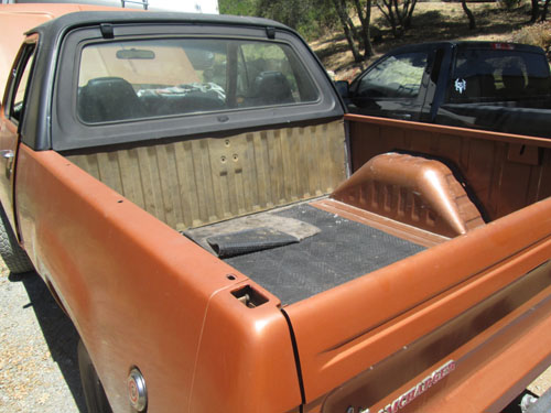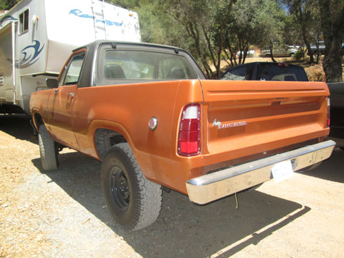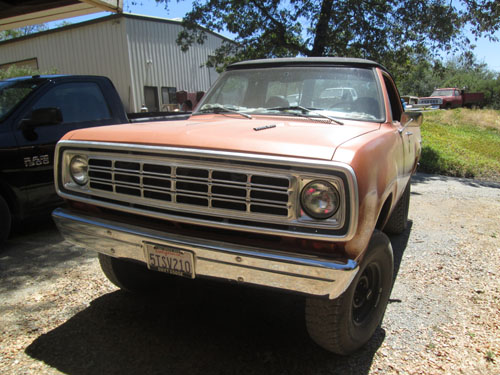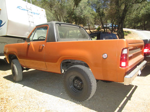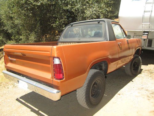 Larry built his 75 RC about 5 years ago. He bought a 78 Trailduster, a 75 Ramcharger and a 77 Club Cab and used the parts from all 3 to build the 75 Ramcharger. He converted it to diesel using a Caterpillar 3114 4 cylinder 140 HP 370 FT/LB torque diesel. He is running a NP 445 with a married 205. He had the adaptor between the NP445 transmission and the NP205 transfer case custom built. It gets 22 mpg on the highway. The truck has A/C, but its not hooked up.The truck has part time front hubs, a 2.71 gear ratio Chrysler 9 1/4 corporate rear differential and a 2.73 ratio Dana 44 front. It took Larry 60-80 hours spread out over 4 months to complete the swap. The top has been modified so it is a "super short" bed. The truck has 15 x 7 cop car wheels.