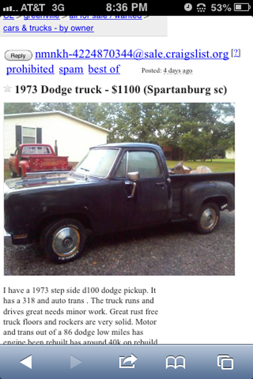 To learn more about Ira's 1973 D100 Dodge truck you can email him at: