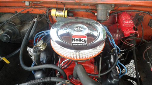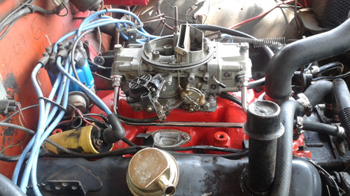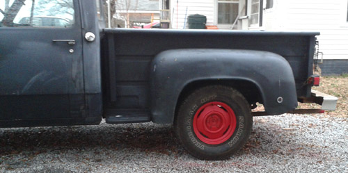 The original 360 & transmission were gone, along with the original fleetside short bed, other than that, she was a peach! Ira drove it home. By the way, it came with new carpet and a new fender. The bed on it now came from a state truck, and the motor is a 1986 318 with a HD 904 transmission.